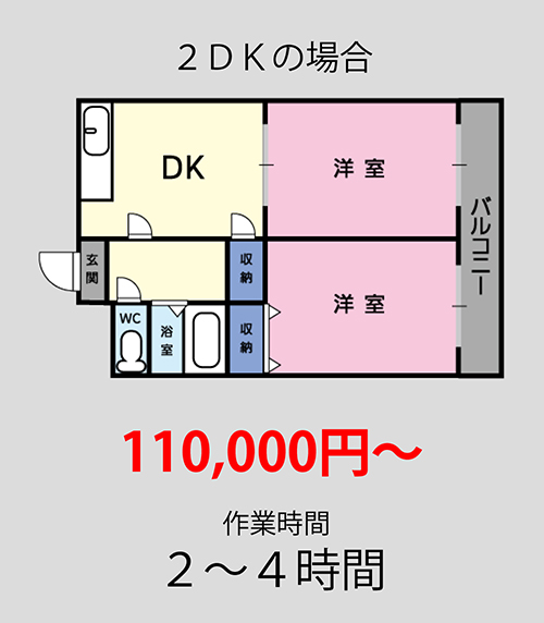 ![]() ご遺品整理 間取り:2LDK 作業時間:4時間 作業人数:6名 |